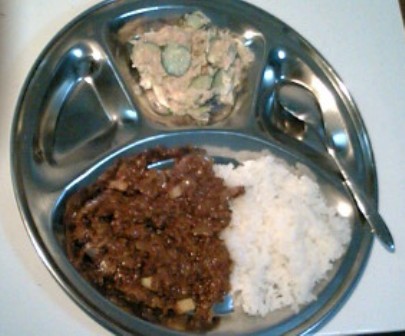 土曜:ひき肉カレーとシーチキンサラダプレート